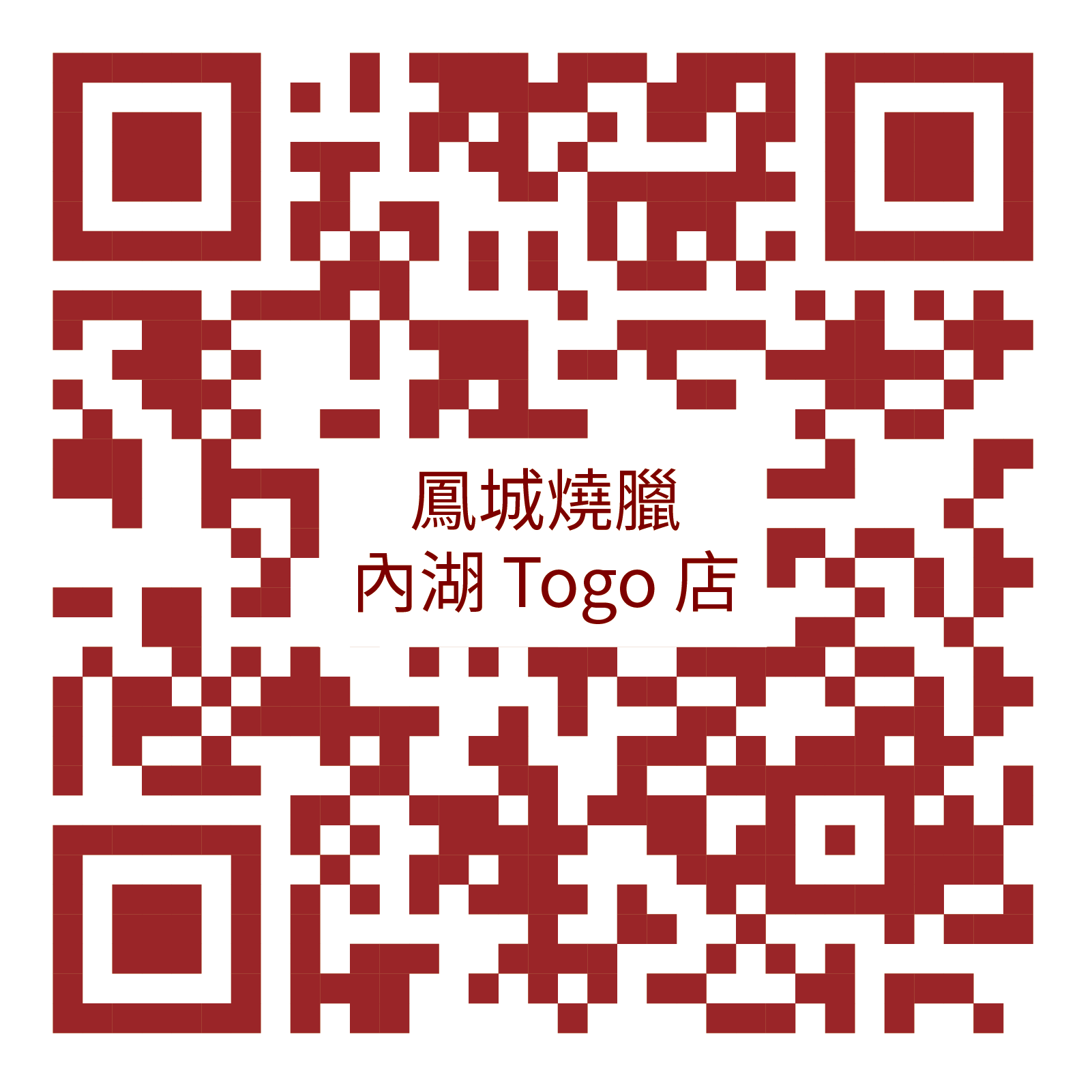 鳳城燒臘家堅持傳統的美味鳳城是創始人韓榮煊夫人的祖籍,於1964年在香港創立第一間鳳城臘味家!在民國六十年偶然機會遇到台北的親友,燒臘當時在台灣尚未流行,故選定在台灣最熱鬧的西寧南路上開立第一家鳳城臘味家,引領香港燒臘的風潮。 了解更多 美味餐點 查看全部 燒臘 飯、粥 麵、河粉 外送到府服務掃描 QR Code外帶、外送立即點 錦州店訂餐 內湖 Togo 店訂餐 滿600元即可免費送亦有客製化便當歡迎來電洽詢02 2518 5001 合作外送APP https://reurl.cc/6KezQd 每日現點現做歡迎您的光臨 查看分店資訊